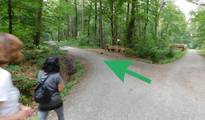 Bei den Gebrüdern Grimm hat der Wolf erzählt, der Wald sei groß und dunkel. Er hatte mit beidem recht. - Wenn wir uns alle am Wendehammer (dort steht diese Schutzhütte) - also quasi an dem "Eingang" treffen, ist es noch eine längere Wegstrecke bis zum Ziel.