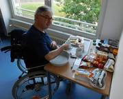 In dieser Woche war ich an drei Tagen nicht in Wiesbaden und das ist aufgefallen, denn es ist schon recht langweilig, wenn an einem einzelnen Tag gar keiner kommt. Das können auch der Fernseher und die zwei oder drei Therapie-Halbestunden nicht ausgleichen. Mit dem linken Bein gehts aufwärts und die linke Hand sowie der Arm machen auch Fortschritte, obwohl das neue Injektionsmittel (Botox) immer noch nicht da ist. Der fukelnagelneue Rollstuhl geht doch etwas leichter als der alte aus der Klinik. Inzwischen rollert er mit beiden Beinen runter ins Cafe, auch wenn es ab und zu noch Schmerzen hervorruft.