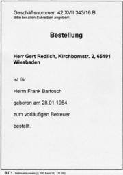 Die Amtsrichterin am Betreuungsgericht "bestellte" mich bereits einen Tag danach (am 15.3.2016) (nachdem ich ganz kurz telefonisch kontaktiert wurde) zum (Teil-) Gesundheits-Betreuer des Ehemanns. Sie hätten den Ehemann zuvor "befragt", ob er erstens mich mit "Vornamen"-"Zunamen" kenne und 2., wer denn "Vorname"-"Zuname" sei und der Ehemann hätte (angeblich) bestätigt, mich zu kennen (ja) und auf die 2. Frage geantwortet "ein Freund".