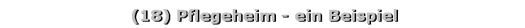 Jeder Alte mit Gebrechen, jeder schwer Erkrankte weiß oder ahnt im Unterbewußtsein, dass er im Pflegeheim an der Endstation seines Lebens angelangt ist. Was gaukeln uns Reiseprospekte und Veranstaltungskalender vor über die Rentnergeneration, die topfit ist und ihren Lebensabend genießt. Diese Zeit kann sehr kurz sein. Was folgt, ist eine lange Zeit des Dahinsiechens, von kleinen Anfängen bis zur schweren Behinderung. Wohl dem, der dabei Beistand hat durch Ehepartner, Kinder, Geschwister oder Freunde. Aber dieser Beistand darf nicht enden bei dem Gedanken, der Erkrankte sei ja nun im Pflegeheim gut aufgehoben. Die persönliche Zuwendung muß weitergehen, und jeder, der einen Pflegefall zu betreuen hat, muß dazu den richtigen Weg finden.
